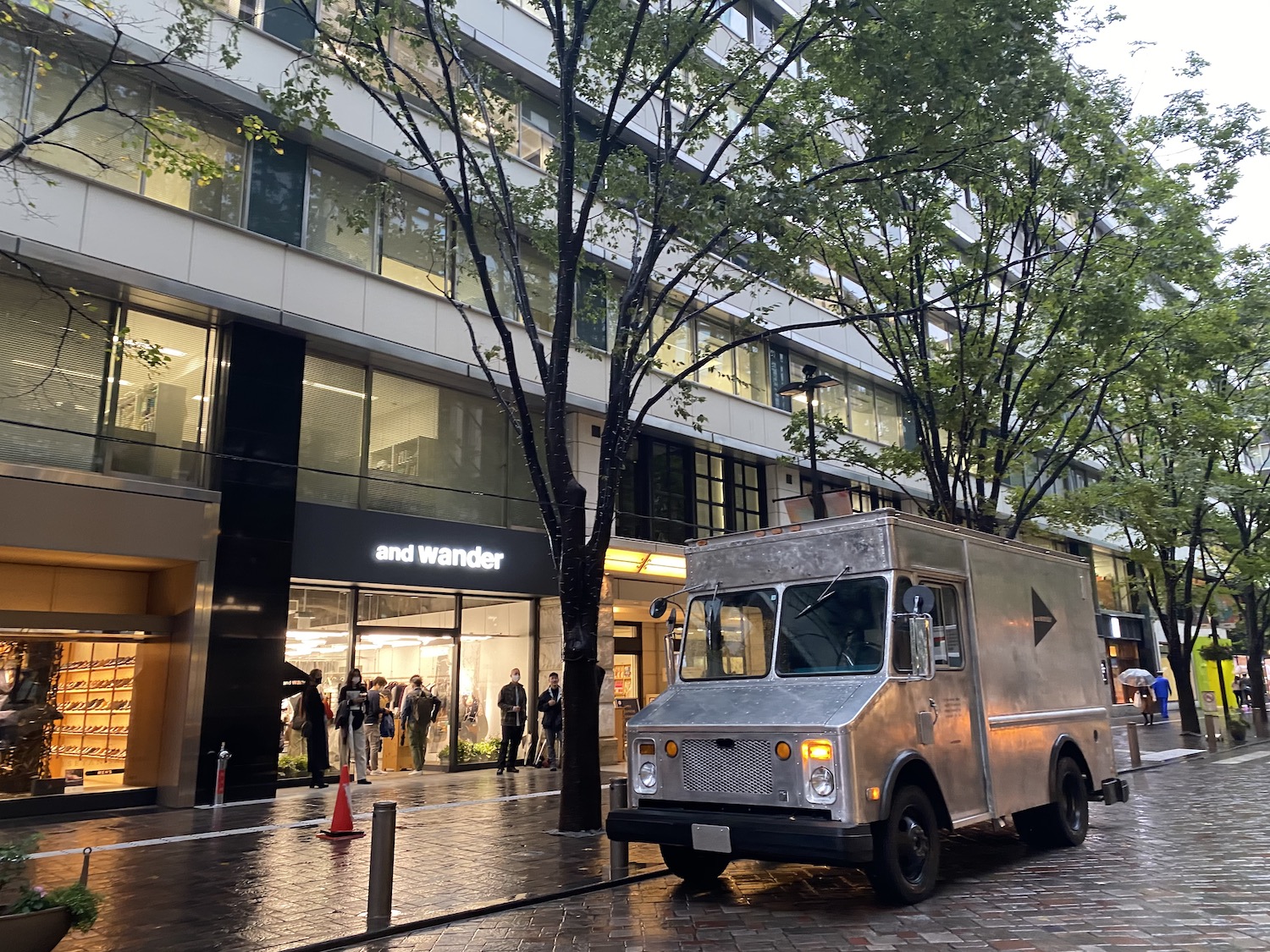 オープン前日のレセプションには移動販売車のand wander MOBILE VANもお目見え。季節や場所に対応して遊び心とアイテムを積み込んで、今後全国を旅するという。