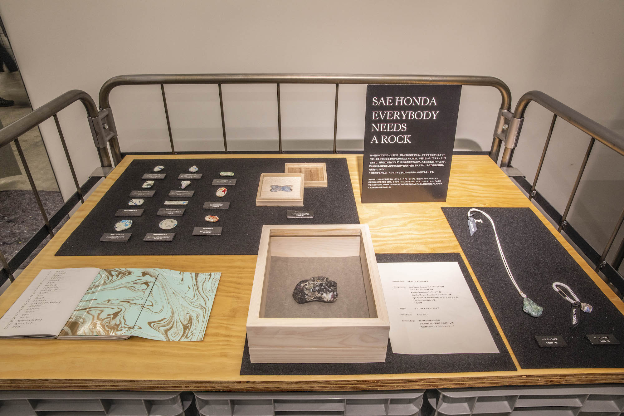 機能性と洗練さを合わせ持った日本発のブランドとして人気を集めているand wander。アウトドアだけではなく、都会でのデイリーウェアとしても活用できるアイテムが並んでいるなか、宝石のような小さな個体が目に入った。ペットボトルやパッケージなど身の周りにある不要になったプラスチックゴミを集積し、特殊加工した人工石だという。価値あるものとして新たにゴミから生み出された美しい小さな人工石の柄はand wanderのアイテムの柄として使われている。ものを捨てずにリサイクルして次に生かしていくというand wanderのメッセージのひとつがここにも現れているのだろう。