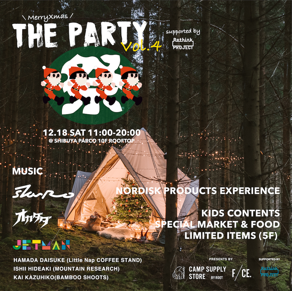 10月に渋谷パルコにオープンしたNORDISK CAMP SUPPLY STORE。渋谷という都心のインショップであることを活かし、ファッションとキャンプ、都市とアウトドアをリンクさせるカルチャー発信基地として注目を集めている。NORDISK世田谷店で開催されてきた「THE PARTY」の拡大版が、渋谷パルコ10階のルーフトップと5階のNORDISK渋谷店で12月18日19日の二日間に渡って開催される。