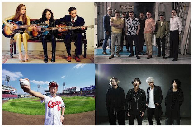 (左上から)伝統的なロックンロールのヴィンテージ感を再現する3兄弟キティー・デイジー & ルイス。ストーン・ファンデーションはジャズやモッズ、2トーンなどが1~2周したような懐かしさ。今年はフィールドオブヘブンでの出演が決定した奥田民生。ONE OK ROCKは国内屈指のライヴアクトで魅せる超大型アップカマーだ