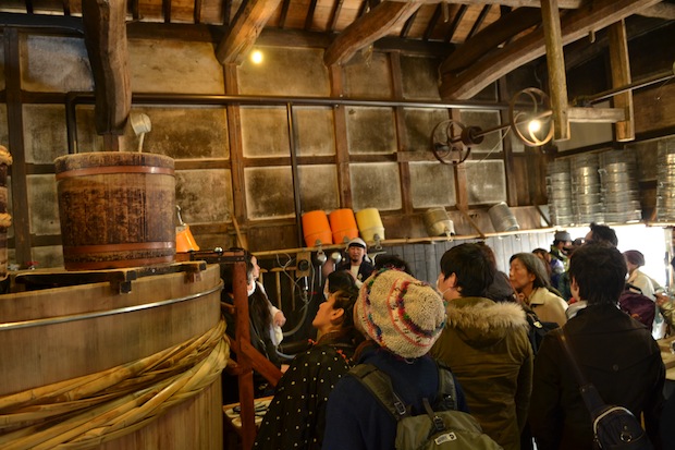 必ず参加したいのが蔵見学ツアー。微生物に聞かせるために蔵人が実際に唄っている仕込み唄も聞かせてもらえる(予約不要)