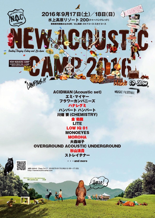New Acoustic Camp 2016、出演アーティスト第二弾発表。ハナレグミ、MOROHA 、LOW IQ 01ら