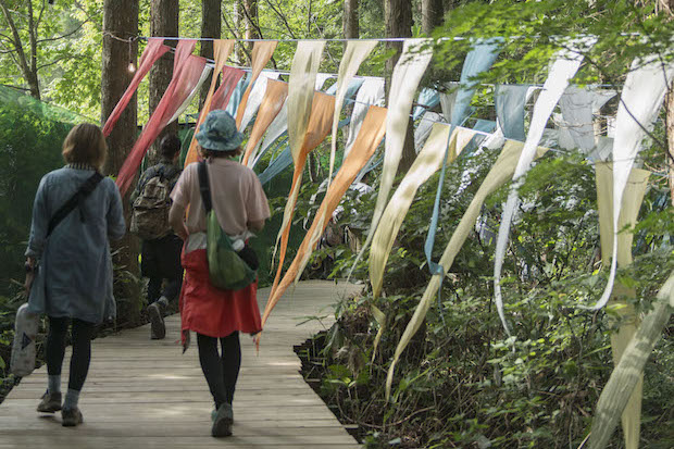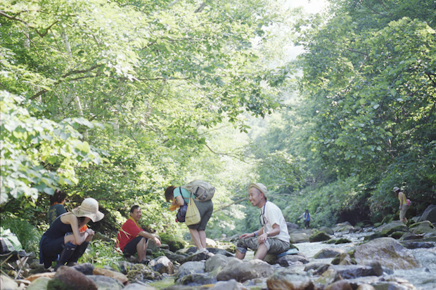 場内を縫うように流れる清流。グリーンステージとホワイトステージの中継地の「ところ天国」脇では、せせらぎの音に誘われ思い思いにくつろぐ人がたくさん。
