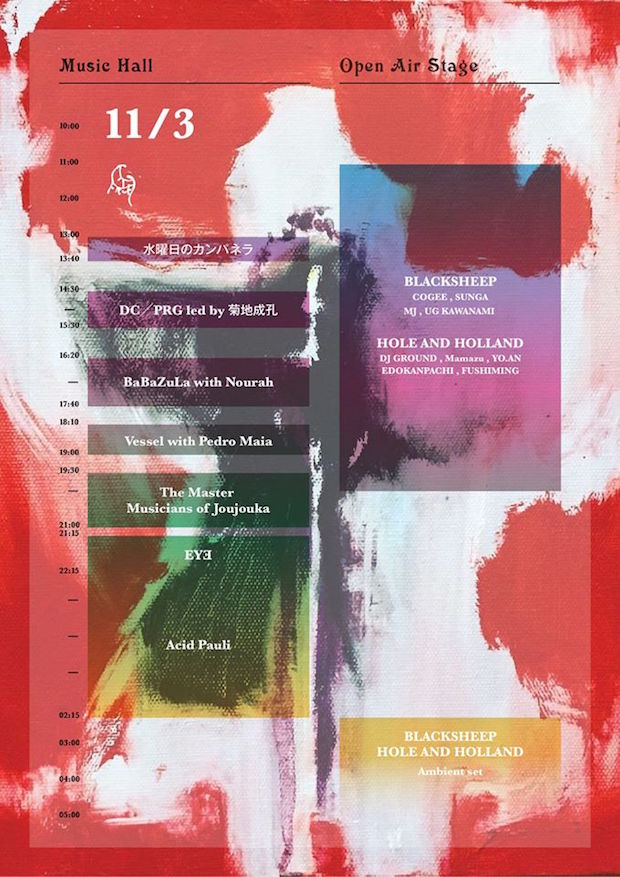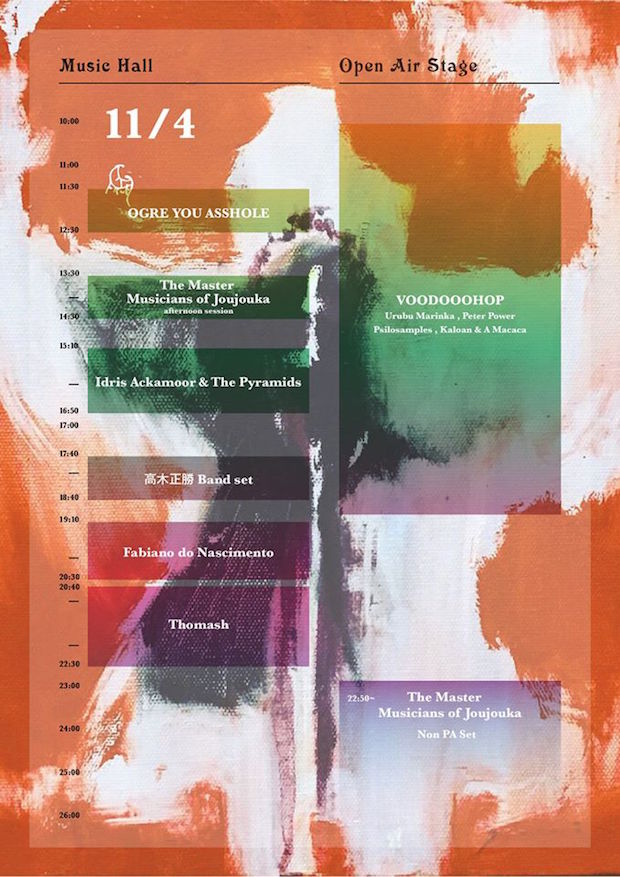 出演:The Master Musicians of Joujouka、Acid Pauli、BaBaZuLa with Nourah、Idris Ackamoor & The Pyramids、水曜日のカンパネラ、OGRE YOU ASSHOLE、他