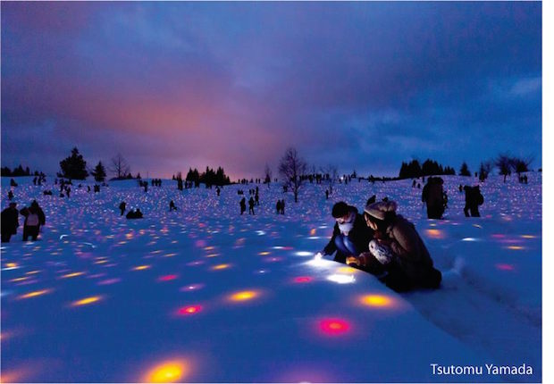 花火だけではなくアートや郷土料理も楽しめる雪花火。2017年は約5400もの人が参加したという。