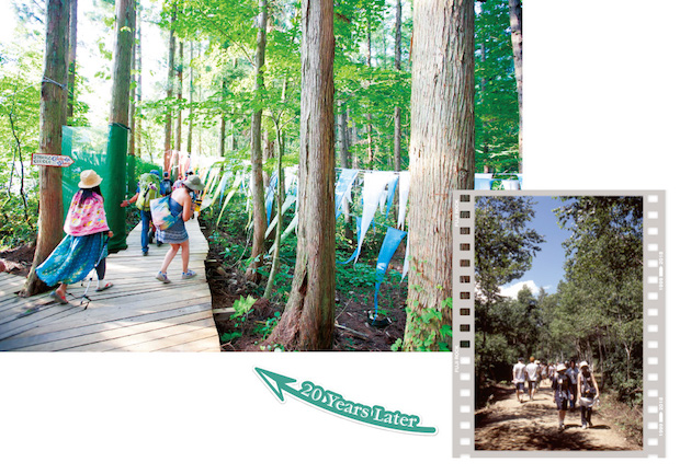まだボードウォークがなかったフジロックの森。ボードウォークは2003年に設置され、ステージ間の移動が快適な森林浴の時間に。