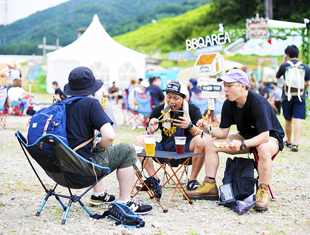 女性同士のグループや、女子ひとり参加にも安心のLADIESエリア。シャワーやトイレも近く、アクセスは抜群で地面もほぼフラット。それだけ好条件なのでやはり混雑も避けられない。女性のみなさんは早めの行動を。男子禁制だが、小学生の男の子連れの母子キャンプは可。