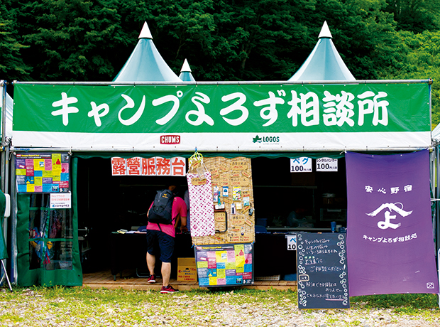キャンプサイトに入ってすぐの場所にあるキャンパーの心強い味方。アウトドアのプロ集団が、テントやギアの修理もできる限り対応してくれるし、ペグやロープなど小物も販売している。なんでも解決できるわけではないが、困った時はまず相談しに行ってみよう。