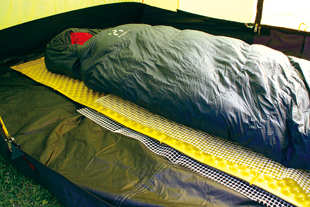 テントのインナーは滑りやすいので、滑り止めシートは、お尻の下だけでなくスリーピングマットの下にも敷いておこう。
