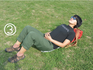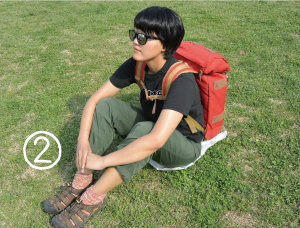 アウトドア用の軽量コンパクトチェアが便利。地面が濡れていてもいつでも休めます。けれど移動するときは必ずたたんで持ち歩いてね。