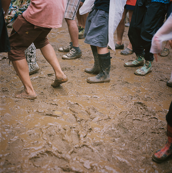 画像=宇宙大使☆スター フジロック会場の足元は、エリアによって大きく変化します。アスファルトや芝地、ジャリ道、ボードウォーク(木道)……などじつにさまざま。なかでもグリーンステージ前の芝地や、ヘブンからカフェドパリへの通路、オレンジカフェ(元オレンジコート跡地)などは、雨が続くと人の往来でとくにぬかるみ化するエリア。ビーサンの鼻緒が切れたり、スニーカーが泥にもぎ取られてしまったり……と、足元トラブルが続出します。