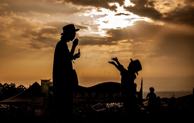 去年から8月一週に開催されるようになった、北陸を代表する夏フェス「ホットフィールド」。ホットフィールドの一番の魅力は、ステージ越しに夕陽が沈んでいくさまを見ていられることだろう。ライブにリンクするかのように、自然の色も変わっていく。その体験は、ここでしか味わえないものだ。メインステージがある場所はほぼ芝生で、裸足で歩きまわることも可能だ。
