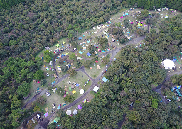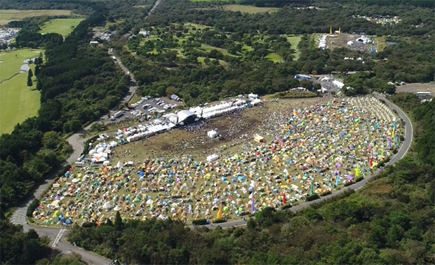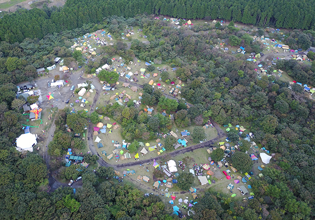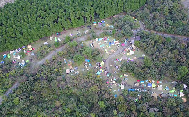 このフェスはオールキャンプイン、つまりオーディエンスはキャンプ泊が前提となる。リピーターのみなさんならどの辺りにテントを張ろうか既に計画されていると思うが、初めて朝霧ジャムに参加する人のために各キャンプサイトを詳細にお伝えしたいと思う。ドローンからの空撮画像とともに紹介するので、リピーターの方も改めて位置決めの参考にどうぞ。