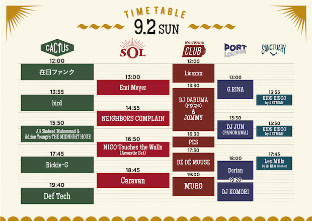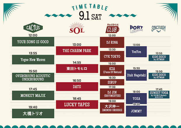 出演:大橋トリオ、OVERGROUND ACOUSTIC UNDERGROUND、Yogee New Waves、東田トモヒロ、Def Teck、Caravan、Rickie-G、他