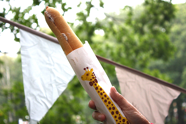 会場でもある水上高原ホテル200のパティシエが作るスイーツ各種ありましたが、ニューアコ名物といわれた「にゅうあんこスティックパン」を購入。細長いスティック状のパンにあんことクリームがサンドされたもの。あんこ+ミルククリーム、しかもパンもフランスパン系のさっくりとした生地のコンビネーション、間違いないっす!