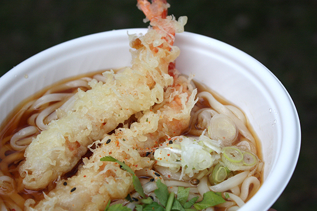 そばかうどんか迷って、うどんをチョイス。目の前で揚げたてのエビ天を乗せてくれるので、サクサクのぷりぷり。麺は細麺でツルツルいけます。飲み疲れした頃合いで食べたのもあって、あっさりした出汁の味にも癒されました。