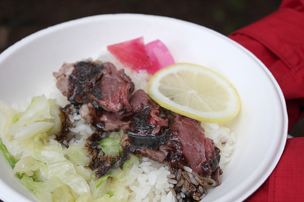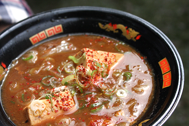 六本木の本格焼鳥料理店の出店ということで焼鳥を食べようと思いましたが、すでに売り切れだったので代わりにこちら。濃いめの味噌でほろほろに煮込まれたあぐ鶏と大きめの豆腐が入って具だくさん。600円で大満足。コスパ高し! 本来なら冷え込む夜に食べたくなる一品。