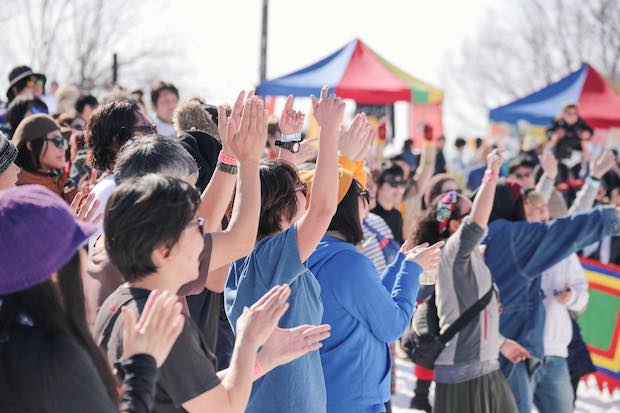 今でこそ、雪が多い地域でも冬にフェスが開催されているけれど、ほとんどが室内を使ってのもの。野外にステージがあり、出店も野外に並ぶ冬フェスは、今もって豪雪JAMだけかもしれない。