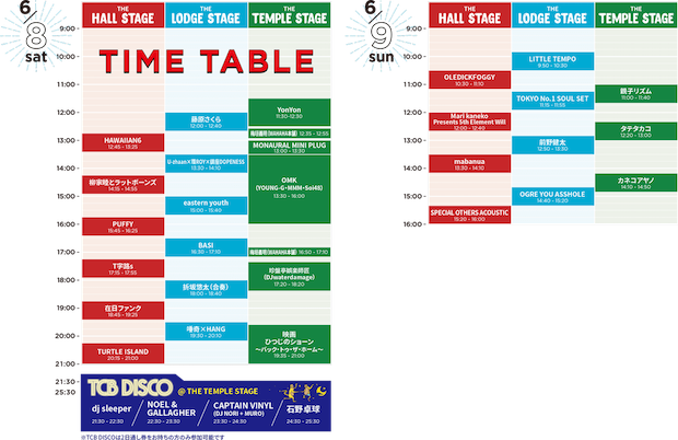 去年同様、ステージは3つ。発表されたタイムテーブルでは、深夜にはTCB DISCOが設けられ、25時過ぎまで音が鳴る。