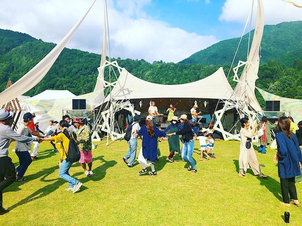 チケットは限定500枚。決して大きなフェスではない。大きなフェスではないからこそ、自然やそこにいるファンとの一体感が得られることは間違いない。五箇山音楽祭の雰囲気に魅せられて、マーケットやフードも各地からやってくるという。