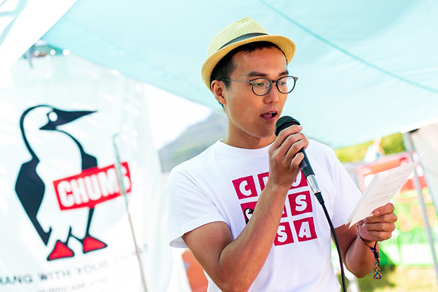 アウトドアアパレル「チャムス」のアジアマーケティングを担当している香港出身のサイモンくん。(写真=sumi☆photo)