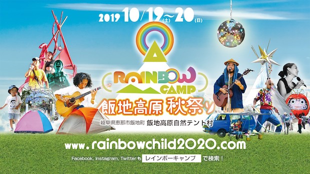 去年まで、夏にワンデイのフェスとして岐阜県八百津町で開催されてきたRAINBOW CHILD 2020。野球場や多目的グラウンドもある公園で、町の中心部から近いこともあって、気軽に行きやすいフェスとして開催を続けてきていた。そのRAINBOW CHILDが、今年の春にキャンプインフェスとして行われ、秋にも開催されることになった。