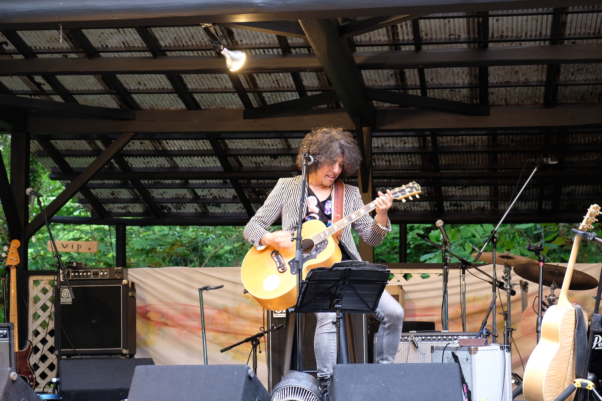 東日本大震災をきっかけに、太陽光などの再生可能エネルギーだけを使ったライブを提唱したのがシアターブルックの佐藤タイジ。その思いをフェスという形で実現したのが中津川 THE SOLAR BUDOKANだ。ライブ、あるいはフェスという自分たちの遊び場を、地球にも優しい持続可能な空間にする。その思いは、フードコートのすべてのメニューの線量表示などにも現れている。「フェスは未来のライフスタイルを提示する場所でなければならない」と言っていたのは佐藤タイジだ。