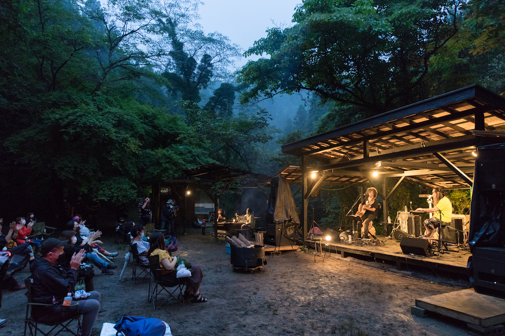 6月14日、「ライブフォレスト」という新しいスタイルのイベントが開催された。会場はあきる野市のキャンプ場、深澤渓自然人村。5月に「ライブ@ホーム」という無観客のライブをここから配信された。そこから一歩進んでのお客さんを入れての野外イベント。