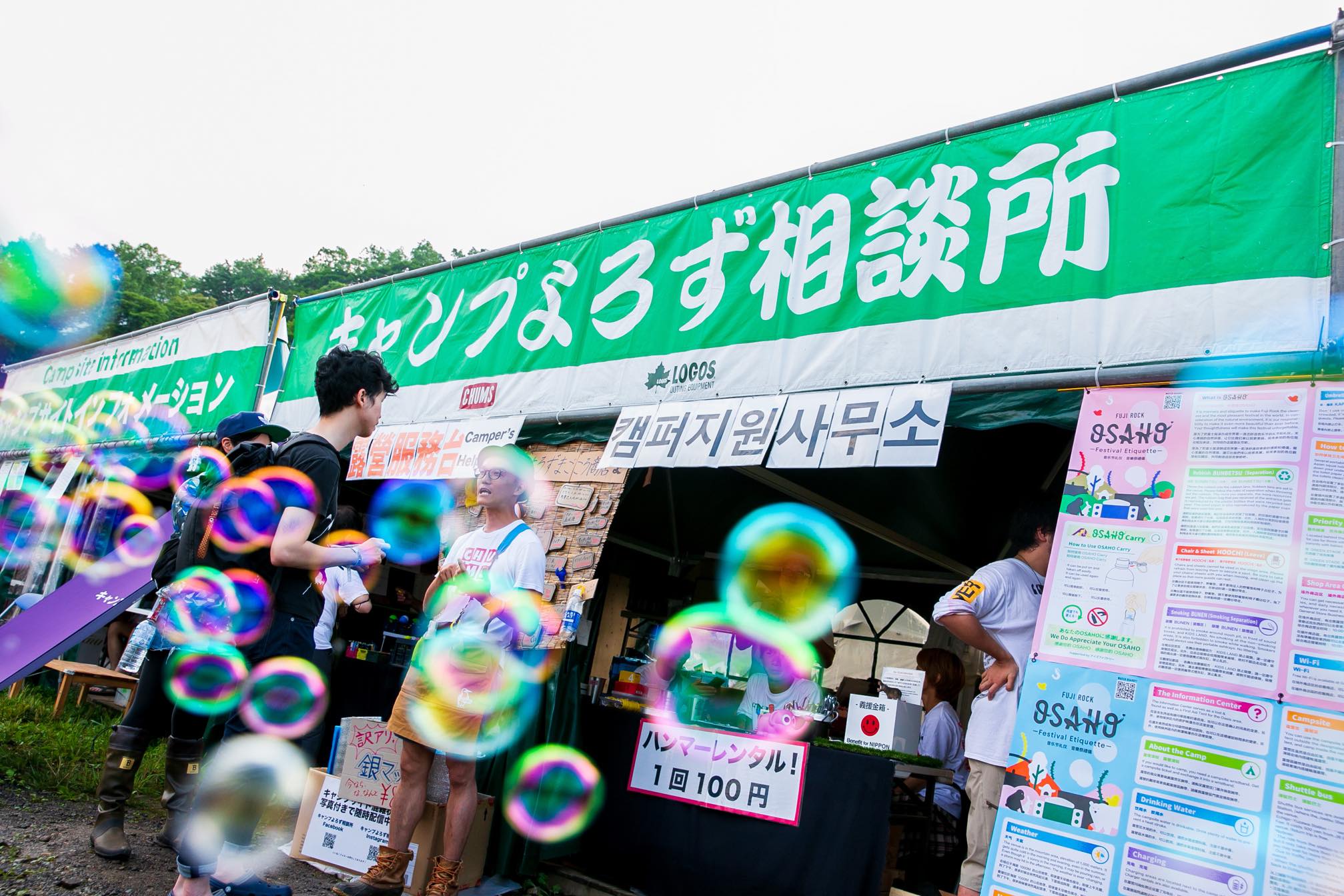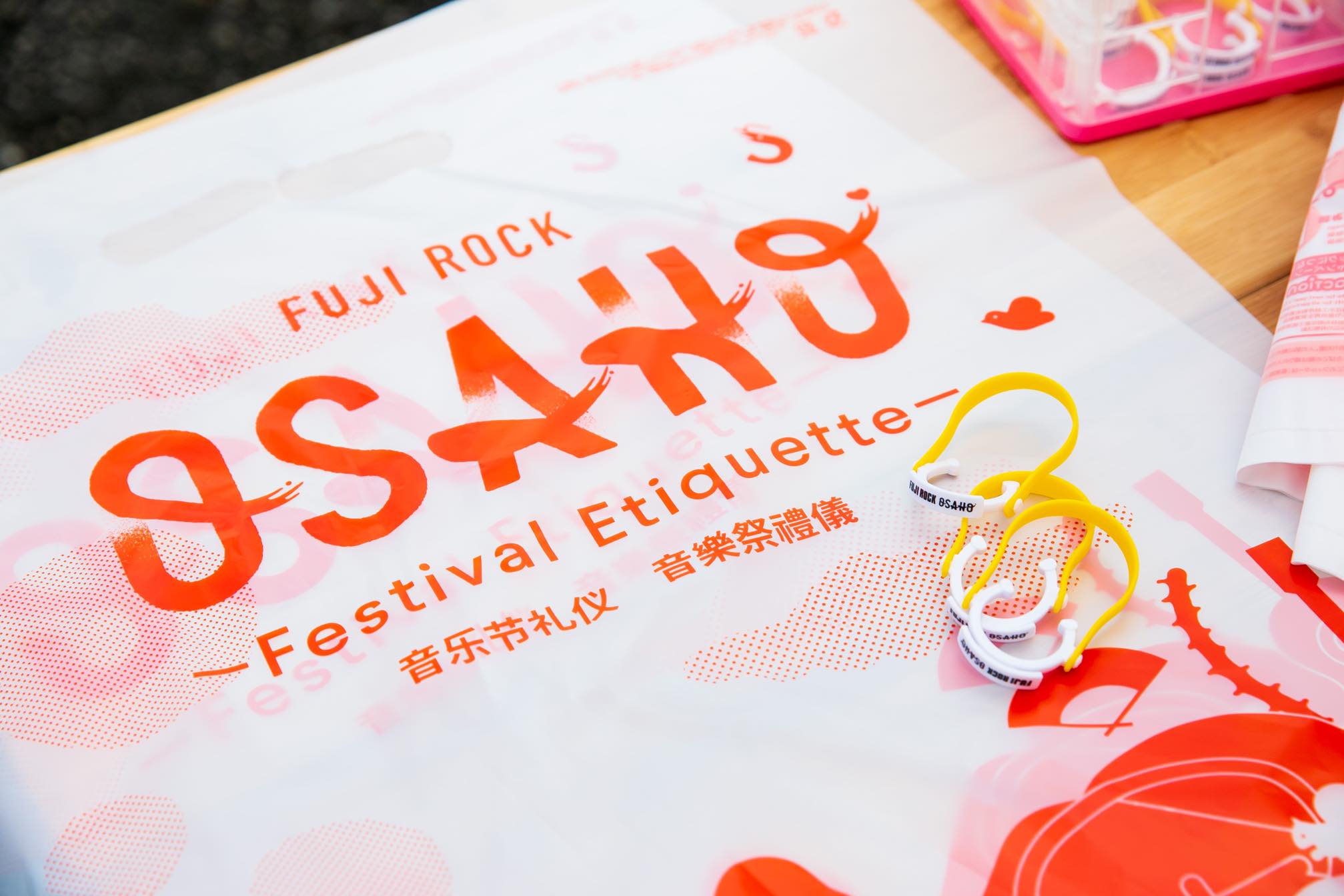 ゴミの分別や喫煙マナー、イスやシートの放置などフェスティバルのエチケットをOSAHOとして、誰もがわかるように会場で告知