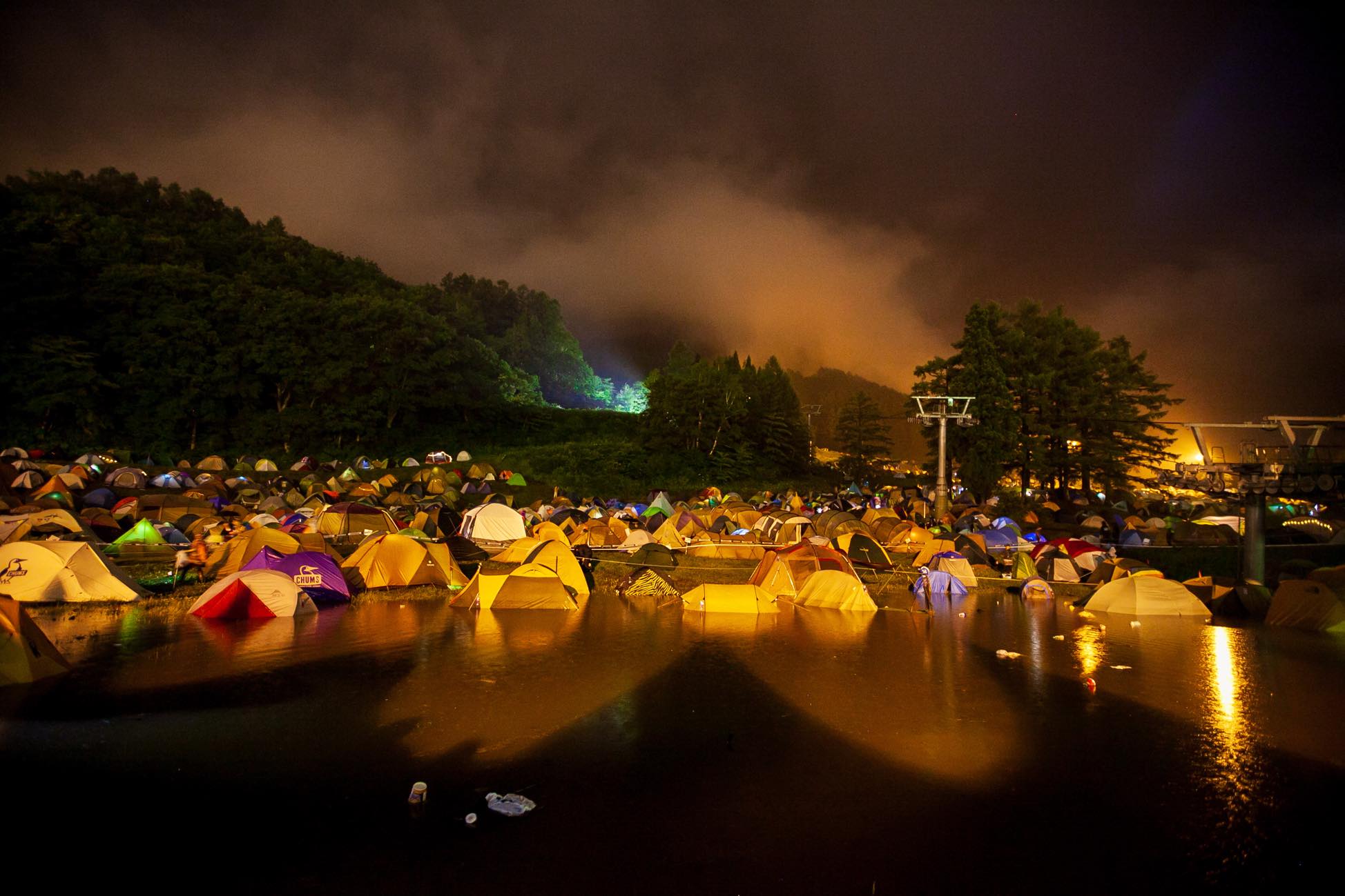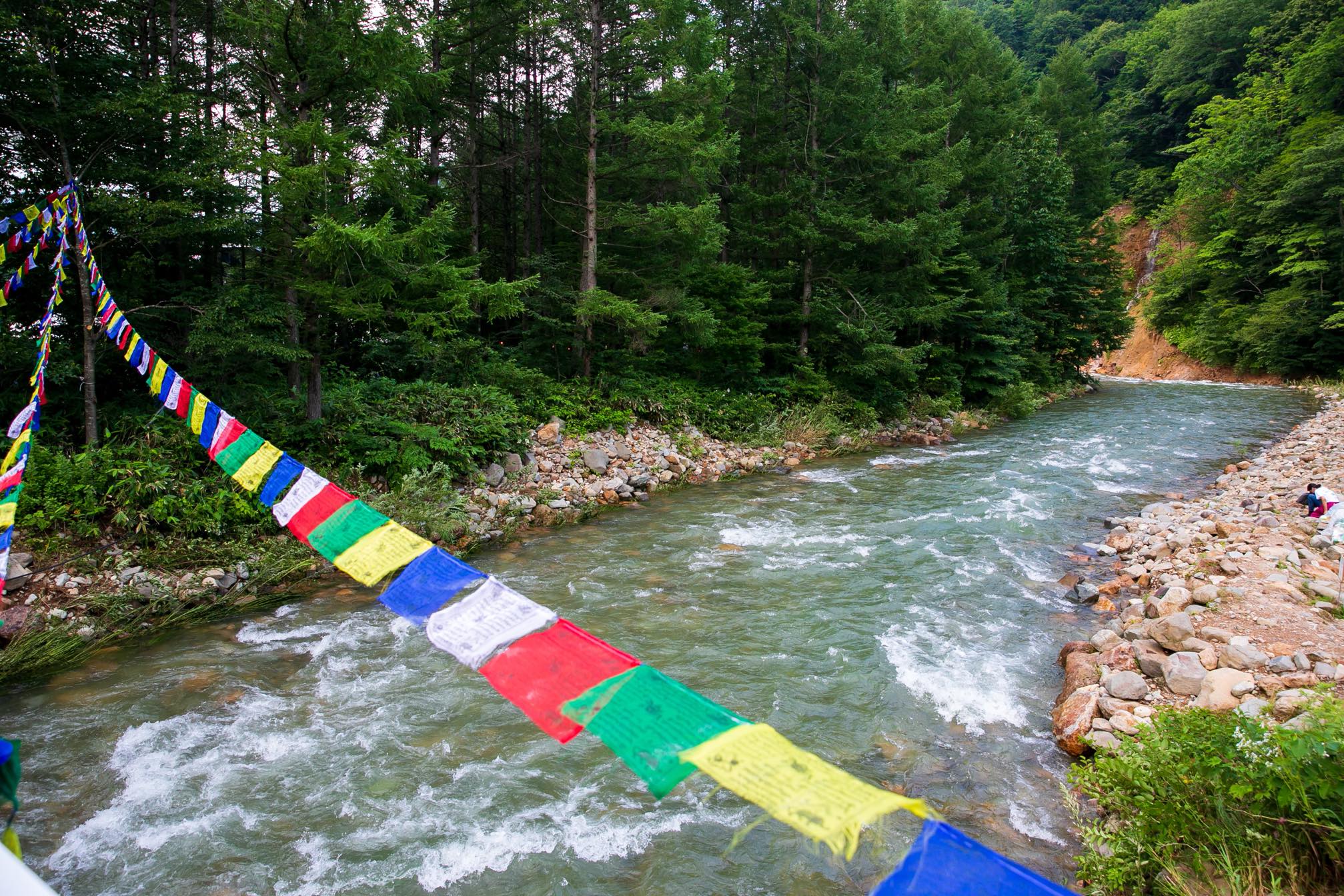上信越国境に位置する苗場は、積雪に恵まれ豊かな水系と森を育む。会場を流れる清津川の河原は、ところ天国としても知られる。
