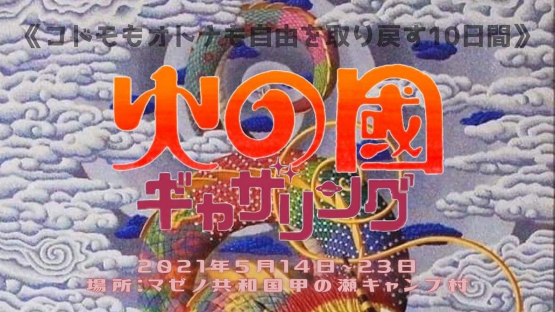 阿蘇山の麓で開催される10日間に及ぶファミリーキャンプイベント。60以上の出店ブースやステージでのライブ、子供も楽しめるワークショップなど。何日滞在しても飽きないコンテンツが用意される。また初日と2日目には、今年1月に急逝した伝説的ミュージシャン南正人の追悼ライブが予定されている。5月12日迄まで、追悼ライブ実現に向けたクラウドファンディングが行われている。