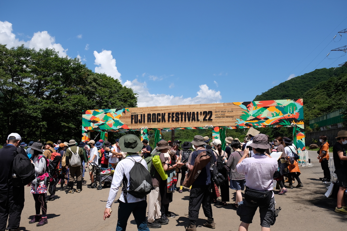 行動制限がないなかで開催された2022年のフジロック。行動制限がないとはいえ、日本での7月後半のコロナ感染確認者は20万人を連日超え、世界の国のなかで最多を記録していた。アメリカやヨーロッパのフェスからは、コロナ前に戻っているかのような映像が送られてきている。一方日本では、コロナと共存していくのか、それともゼロを目指すのか、今もなお曖昧なままだ。そんな状況にあって、グリーンステージMCのスマイリー原島さんは「いつものフジロック、いつも以上のフジロック」と呼びかけていた。前夜祭の日に強い雨が降った時間もあったけれど、金曜から月曜まで夏フェスを楽しむには絶好の天気だった。青い空と入道雲が、苗場の森にはマッチする。