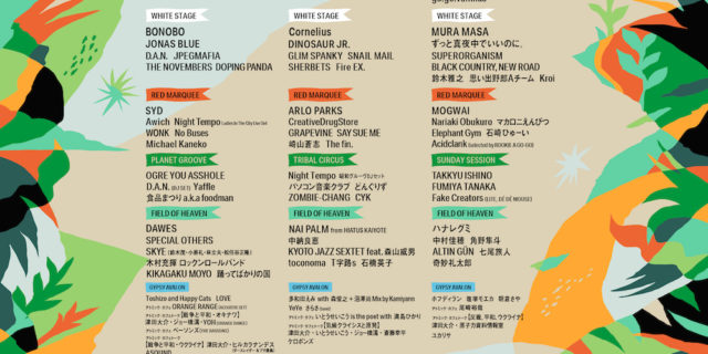 10月9日(日):ALFIE TEMPLEMAN、BIM&VaVa、BOHEMIAN BETYARS、Daichi Yamamoto、DJ KOCO a.k.a. SHIMOKITA、FANTASTIC NEGRITO、羊文学、加山雄三、neco眠る、never young beach、ROOT SOUL、STUTS [BAND SET]、Takuro Okada、yonawo