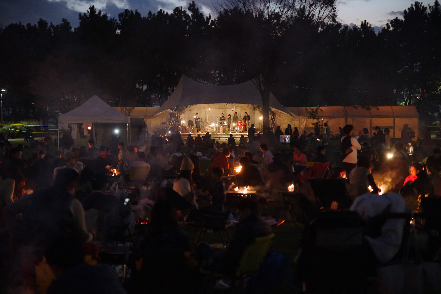 東京23区内にあるにも関わらず、焚き火も楽しめる唯一のキャンプインフェス。焚き火台レンタルと薪がセットになったチケットも発売されている。ステージ近くで、自分が起こした焚き火を楽しみながらのライブ体験はここだけにしかないものだろう。「防災×アウトドア」をテーマにしたコンテンツも企画されている。