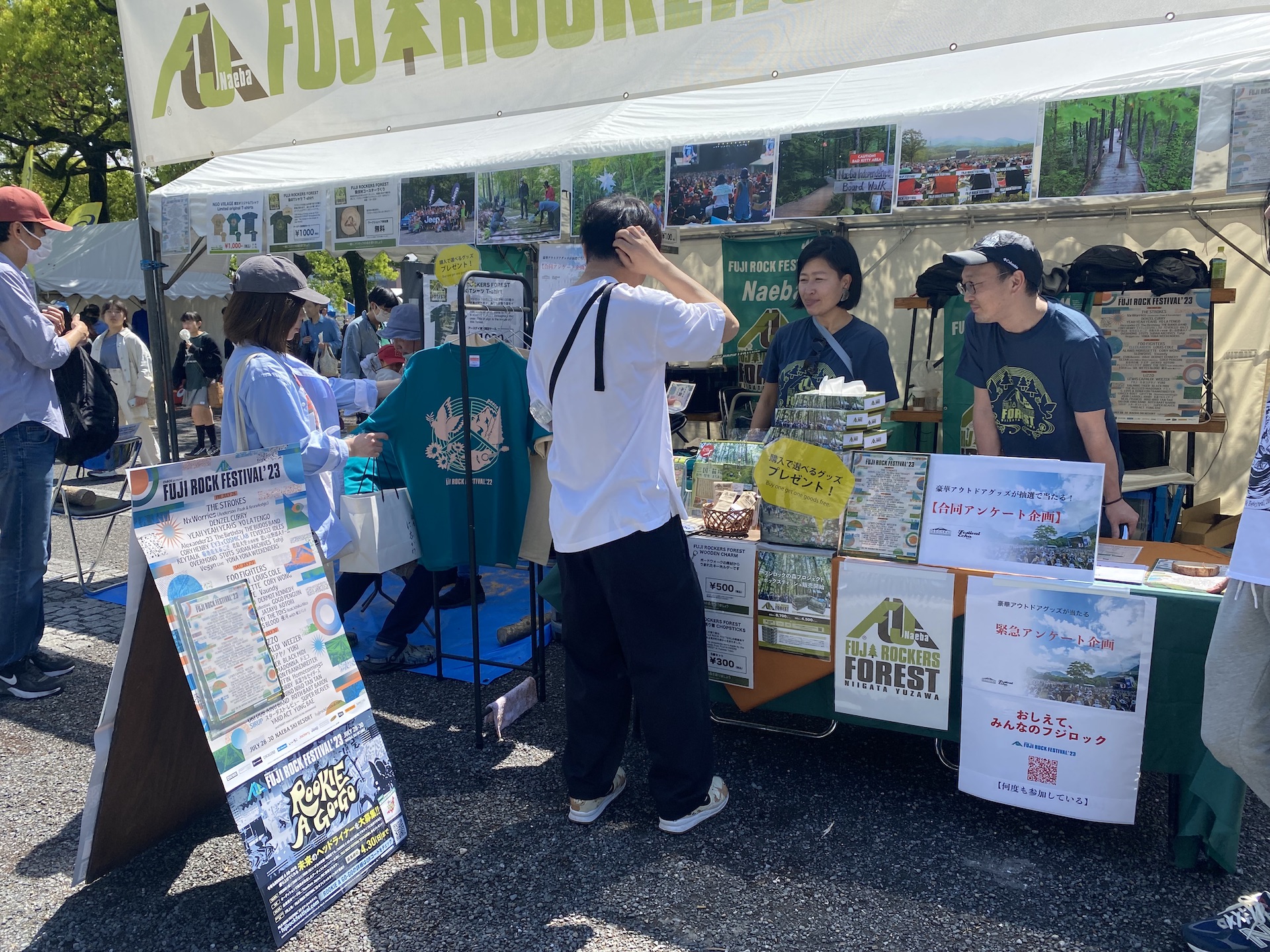 また、フジロックブースでは フジロックに対して熱い思いをもつ熱狂的なファンをはじめ、コロナ禍の生配信やニュースなどの報道で初めてフジロックの存在を知ったという人、フジロックに行ったことがない人、今年初めて参加するという予定の人まで、フジロックのことが気になるすべての人を対象にした合同アンケート企画「おしえて、みんなのフジロック」を実施。これは、オフィシャルフリーマガジン『FesEcho』とオフィシャルWEBメディア『富士祭電子瓦版』との合同企画で、アンケートに答えると、抽選で豪華アウトドアグッズが当たるというもので、ひとりひとりの声が、フジロックの企画や運営に届くまたとないチャンスとあって、こちらも多くの方がアンケートに答えていました。