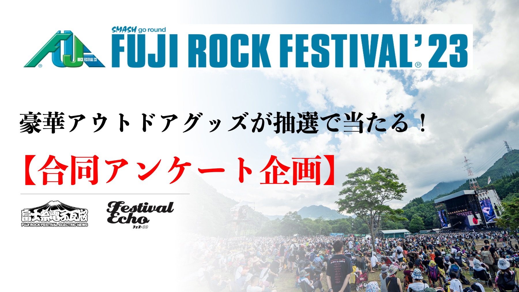 アンケートに答えてくれた方の中から複数名に「フェスで使える豪華アウトドアキャンプセット」を抽選でプレゼント! とのこと。プレゼントの詳細については、決まり次第オフィシャルSNSなどでも後日発表されるので、まずは、アンケートに答えてみよう。みんなの声から見えてくるリアルなフジロック。このアンケート結果については、今年5月末に4年ぶりに発行されるオフィシャルフリーマガジン『FesEcho2024』に掲載の予定。