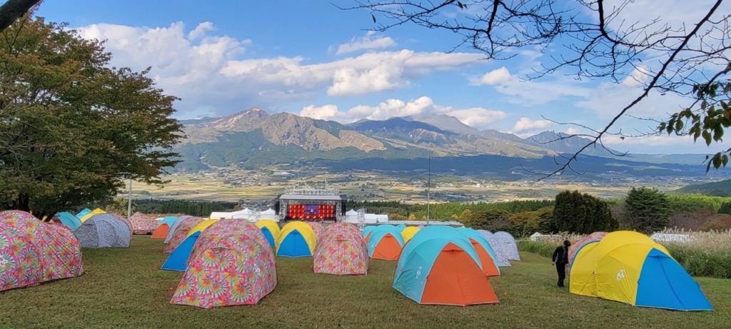 “天空のキャンプインフェス”、阿蘇ロックで雄大な山々に抱かれながら踊り、遊び、眠る楽しみ。