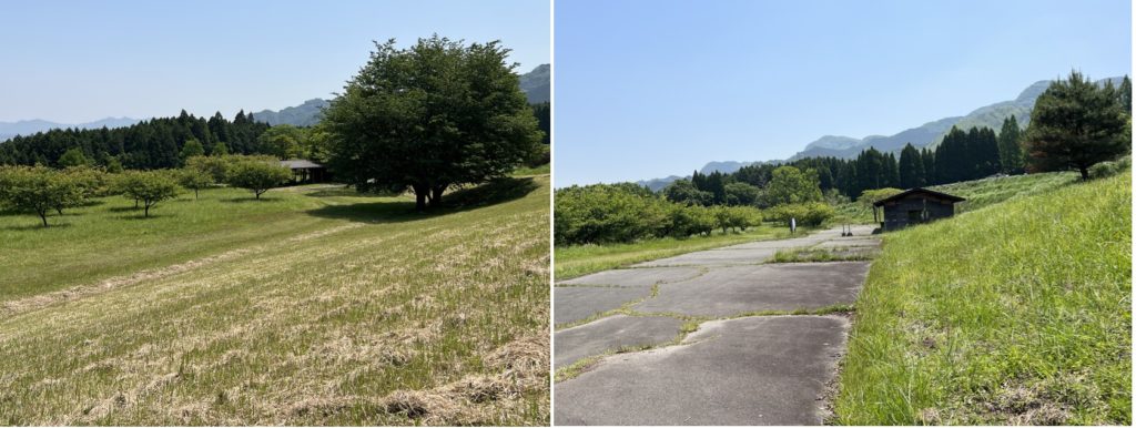 新エリアの様子をちょっとだけ公開。バイクを置いてのキャンプができるこのエリアは焚き火も可能。来場前にAサイト、Bサイトのどちらにテントを張りたいを確認してきたほうがいい。