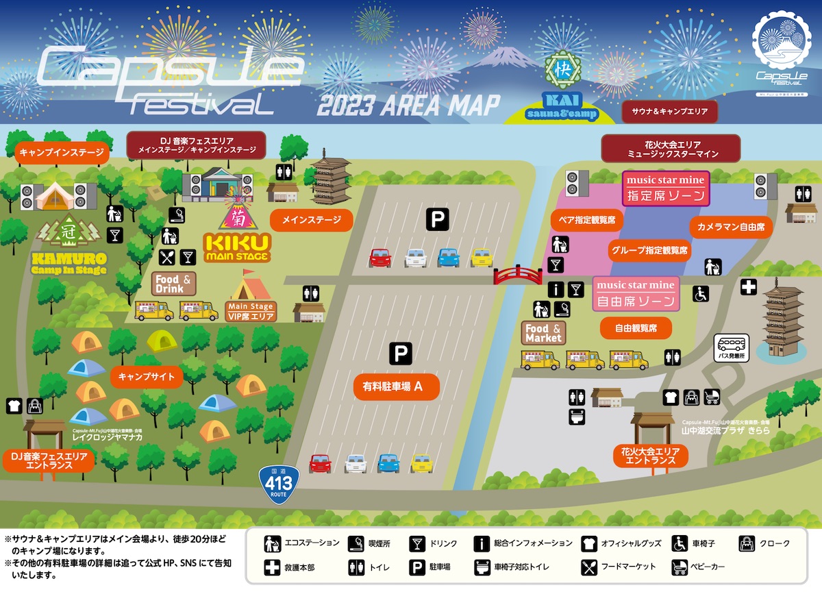 音楽・サウナ・キャンプと伝統を融合させた新スタイルの花火大会として、山中湖で初開催されるのが「Capsule Mt.Fuji山中湖花火音楽祭」だ。花火大会エリア、DJ音楽フェスエリア、サウナ&キャンプエリアの3つのエリアで当時開催。DJ音楽フェスエリアでは、石野卓球やDJ KRUSHなどの日本トップクラスの人気DJをラインナップ。クラブ&ダンスミュージックと花火のコラボは、ここだけの特別な時間だろう。花火大会エリアでもサウナ&キャンプエリアでも、それぞれの違った楽しみ方ができるのが、Capsuleの大きな特徴だ。花火は9月23日のみ。尺玉(10号玉)を含む1万発が予定されている。