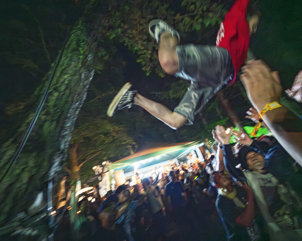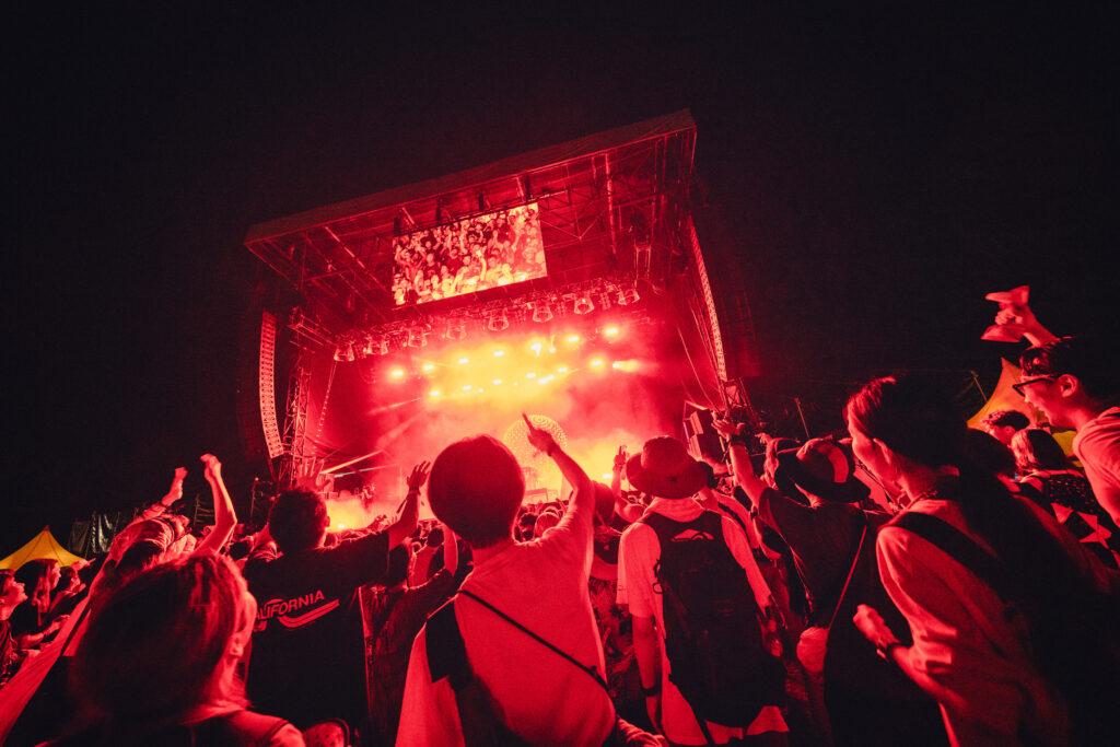 ライブの醍醐味はモッシュにダイブ。そう言いたいときもあるものの、何事もホドホドニ。あまりに盛り上がり過ぎてしまって後先考えずに群衆に飛び込めば、そのまま病院送りになってしまうことだってある。ステージスタッフがサポートしてくれていると思うべからず。あれはサポートではなく、ケガ防止のために止むを得ず布陣された戦士たちなのだから。もうひとつのホドホドニは、やはり飲み過ぎ。自分の許容を超えてしまっての大酒は体のためにはならないし、揉めごとの一因に。また、山の上の会場でもしも寝込んでしまったら大変。眠るな〜死ぬぞ。パンパンッ!! と、漫画のひとコマになってしまう。