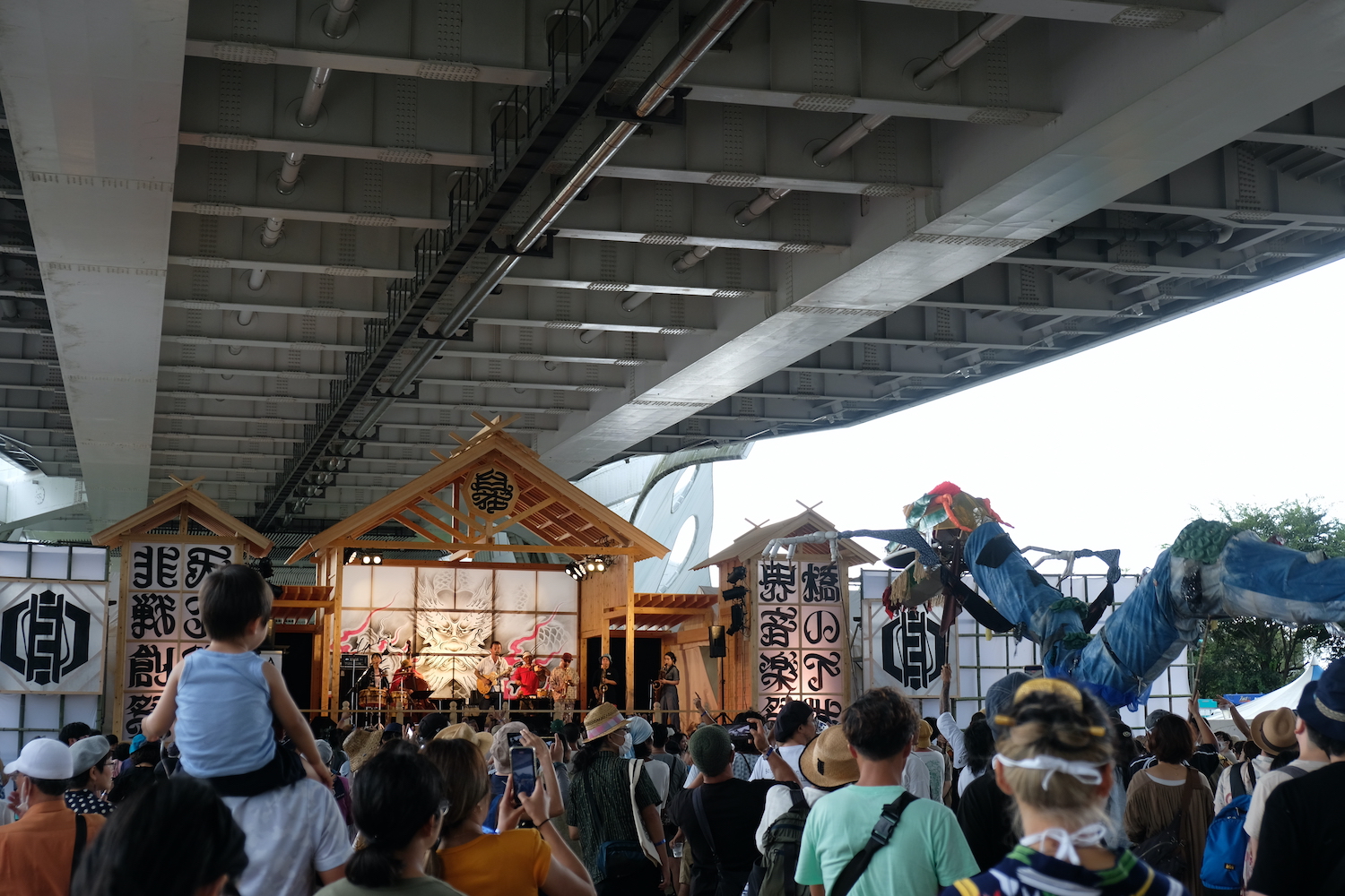 フジロックのオレンジエリアにステージが展開され、「フジロックが戻ってきた」と感じた人も多かっただろう。アジアなどの多様性を内包したそのORANGE ECHOをオーガナイズしていたのが橋の下チーム。あのステージは、橋の下でもメインステージと使っているものだ。