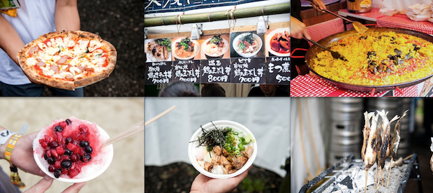 石釜ピザから、和風丼、パエリアから鮎の塩焼きまで。3昼夜の営業で体力的にはハードな数日となるが、来場者の胃袋をつかめばアタリも大きい!?
