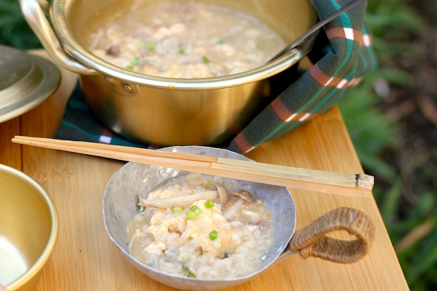 道具のオススメは、サーモスの「シャトルシェフ」。お米を入れてだしが沸騰したら3分加熱し、鍋を保温容器に移せば15分後には見事おじや。ガスの節約にもなるし、コンロにかけて忘れることもありません。