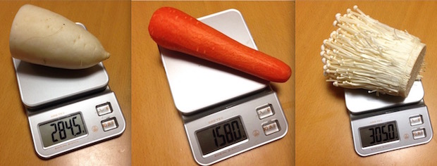 どれくらい軽量化できるかは野菜の種類によって異なりますが、だいたい乾燥前の重量の5〜15%にまで減らすことができます。それでは、劇的なビフォア&アフターを見てみましょう!