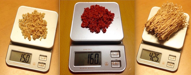登山など、湯で戻ったときの量をはっきり知りたいときは、生の状態で計量しておき、それを使用する分量ごとに分けて干しておくと間違いがありません。