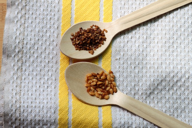 面倒な方は煎る作業を省いて、お水の代わりにそば茶で代用してもよいです。そば茶はすでに煎りつけてあるものですので、そのままスープなどにも使えますよ。