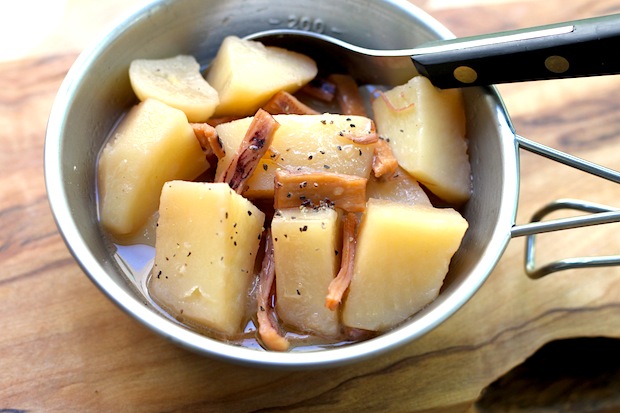 そしておつまみでありながら、視点を変えて眺めてみると、旨味がたっぷり凝縮される優れた乾物でもあります。乾物は切干し大根やひじきだけにあらず。ことトレッキングやバックパッキングなど、担ぐ荷物を減らしたいときに大活躍です!