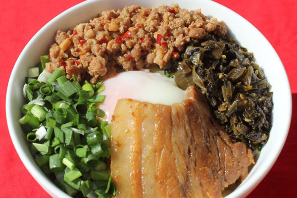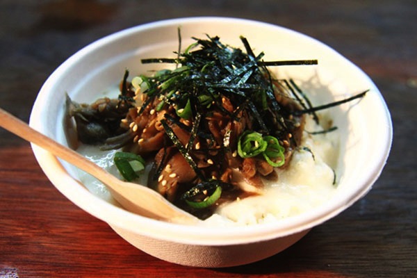 1980年代後半に台湾から来日した店主が作る本場台湾料理。写真は拌拌麺(台湾混ぜそば)で、甘辛く味付けしたそぼろや温泉たまご、高菜などを混ぜて食べる汁なし麺。ほか魯肉飯(ルーロー飯)や小籠包、担々麺などもラインナップ。お店は入場ゲート手前の場外エリアに位置し、会場オープン前にガッツリ食べたい人にもオススメだ。