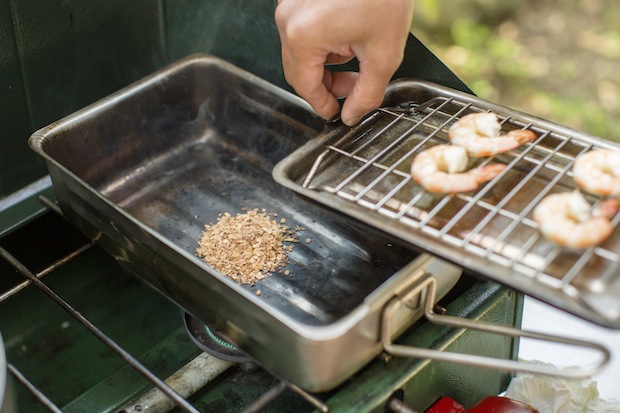 燻製で使う道具は今回もキャメロンズというブランドの「ストーブトップスモーカー」です。このキャメロンズは収納スペースをあまりとらず、サッと取り出して使えるのが魅力で、家庭の料理に取り入れている人も多いようです。燻製はブラックペッパーやハーブといった調味料と同じ感覚で、食材に香り付けするいわば“香りの調味料”のようなもの。大げさに考えず、気軽にぜひ試してみてほしいと思っています。