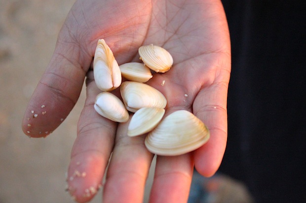 あらかじめ貝を撒いている潮干狩り場と違い、簡単に採れないこともありますが、私から言わせるとそこがよいのです。手にコツっと当たった瞬間、よろこびがググッと増します。初めて訪ねた土地で貝なんてどこで採ったらよいか分からないのは私も同じ。でもどこへ言っても大概地元の方がいます。シンプルに聞けば教えてくれるものです。